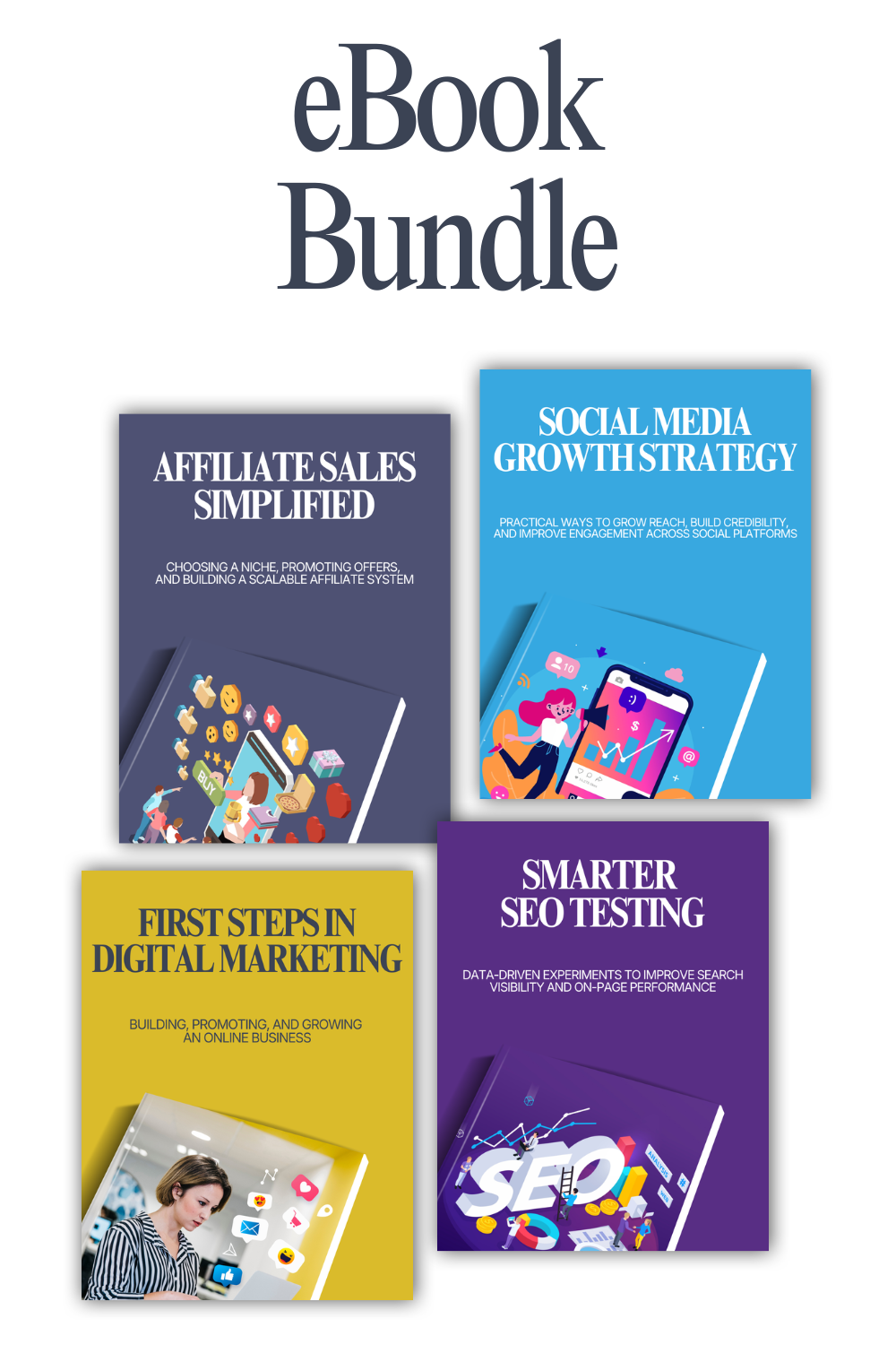 You’ll strengthen your search and testing mindset with Smarter SEO Testing, learn how affiliate systems are built through Affiliate Sales Simplified, and gain a broader beginner framework through First Steps in Digital Marketing. Social Media Growth Strategy adds practical platform guidance for content, reach, and audience engagement. Together, the bundle helps connect traffic, promotion, messaging, and online business structure into one more usable system.